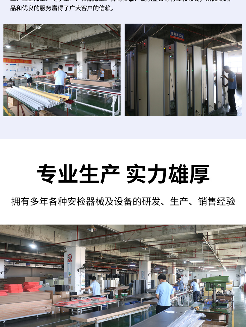 可以快捷、有效地檢測出通過人身上暗藏的管制dao具、q支等違禁器械以及電子元器件,銅、錫、鋅等各種貴重金屬,起到安全、企業(yè)防盜作用。