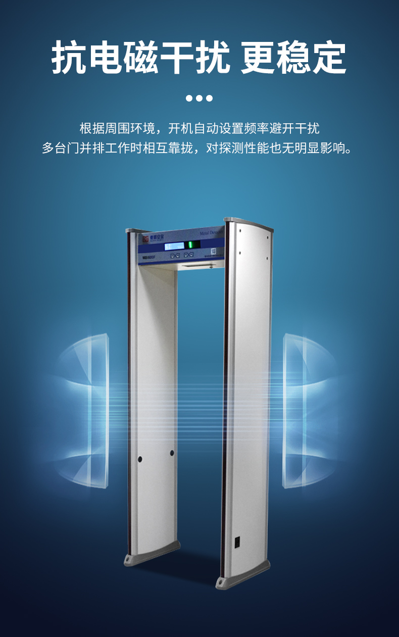 2、抗干擾設計:根據周圍環境,開機自動設置頻率避開干擾,多臺門并排工作時相互靠攏,對探測性能也無明顯影響